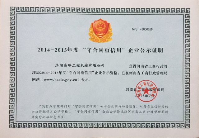 2014-2015守合同重信用企業(yè)1